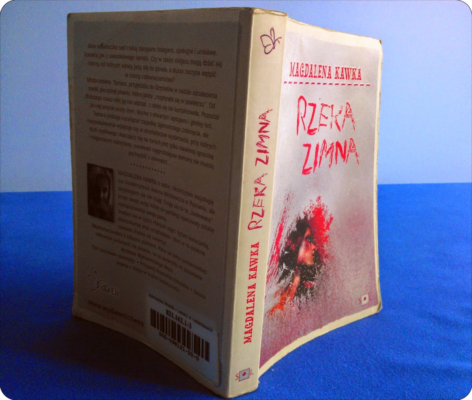 Kawka to jedna z pisarek, na której prozę miałam ogromną ochotę. Oddając tabun lektur i wypożyczając kolejne, natknęłam się powieść, której okładka swoją prostotą przykuwała wzrok. Szybko przeczytałam opis z tyłu okładki i spojrzałam na hipnotyzujące zdjęcie autorki. Do domu wróciłam z dwoma nadprogramowymi publikacjami "na później", w tym właśnie z "Rzeką zimną", która intrygowała tajemniczością kolejnych szczegółów: tytułem, nietypową historią i bohaterami.